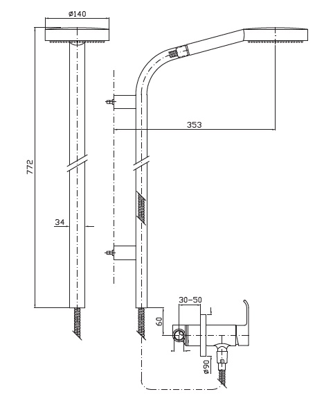 Wąż natryskowy wewnątrz drążka,