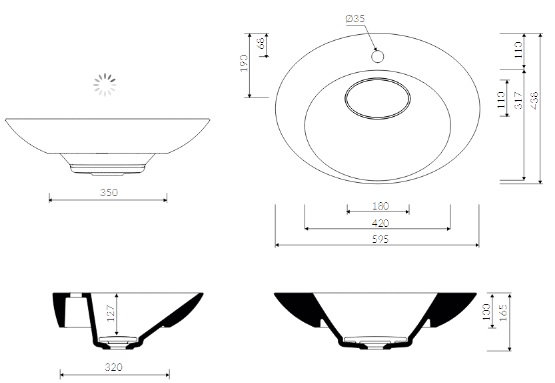 Marmorin Amos II Umywalka wpuszczana w blat 59,5x43,8x16,5 cm Biały P_U_004_02_0595