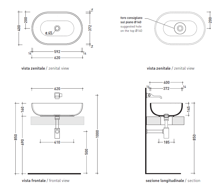 Flaminia Pass Umywalka stawiana na blat 62x40 cm Biały PS62C