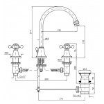 3-otworowa bateria umywalkowa, wylewka satała, z perlatorem, korek 1 ¼”, wężyki elastyczne.