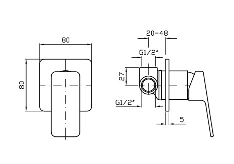Jednouchwytowa bateria natryskowa podtynkowa.