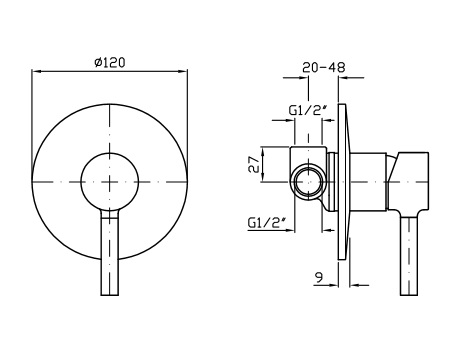 Jednouchwytowa bateria natryskowa podtynkowa.