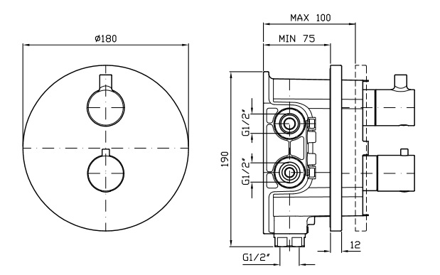 Bateria termostatyczna natryskowa, podtynkowa ½” z zaworem odcinającym do uniwersalnej części podtynkowej Zetasystem R978000.