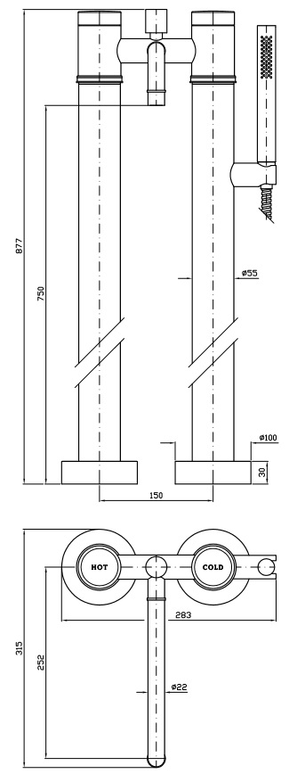 Wolnostojąca bateria wannowo - natryskowa z przełącznikiem, zestawem natryskowym, wąż elastyczny 1500 mm. Wysięg wylewki 220 mm.