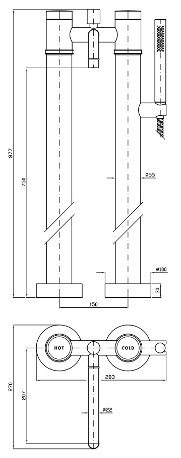 Wolnostojąca bateria wannowo - natryskowa z przełącznikiem, zestawem natryskowym, wąż elastyczny 1500 mm. Wysięg wylewki 175 mm