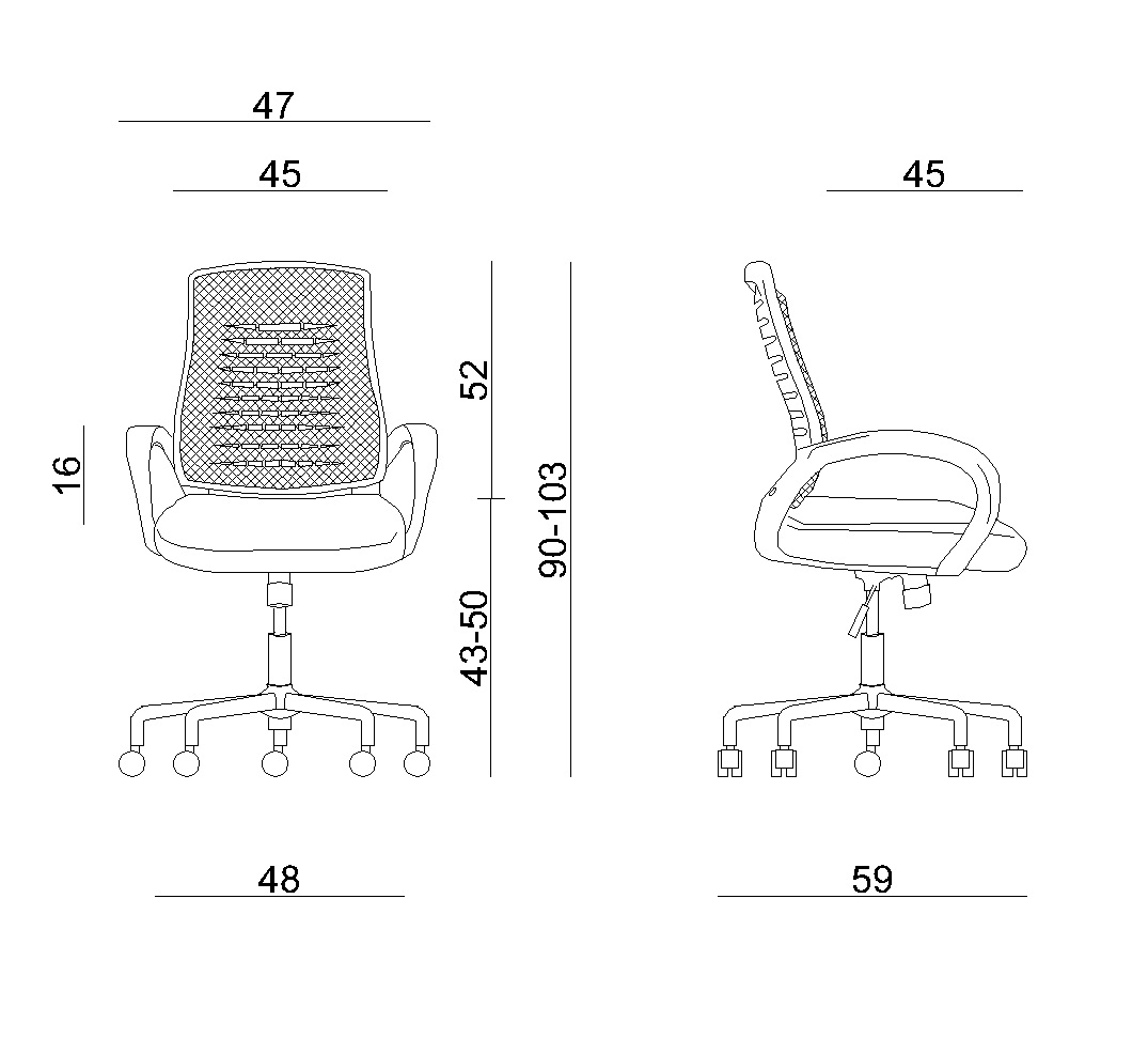 - Oparcie pokryte wysokiej jakości siatką przepuszczającą powietrze