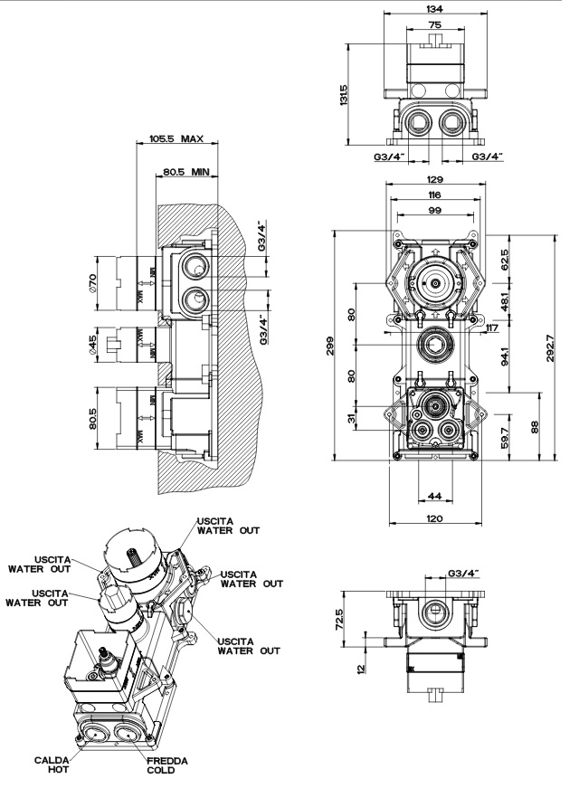 Gessi Tondo Bateria natryskowa podtynkowa Chrom 43111.031 / 43111031