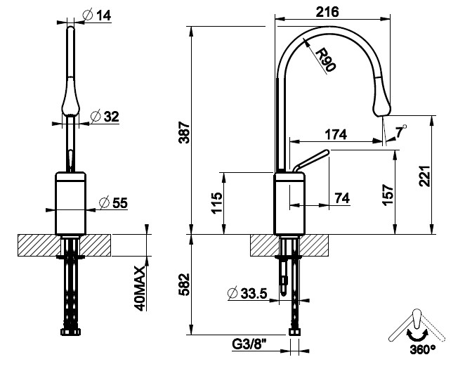 Gessi Goccia Bateria umywalkowa jednootworowa chrom 33604.031