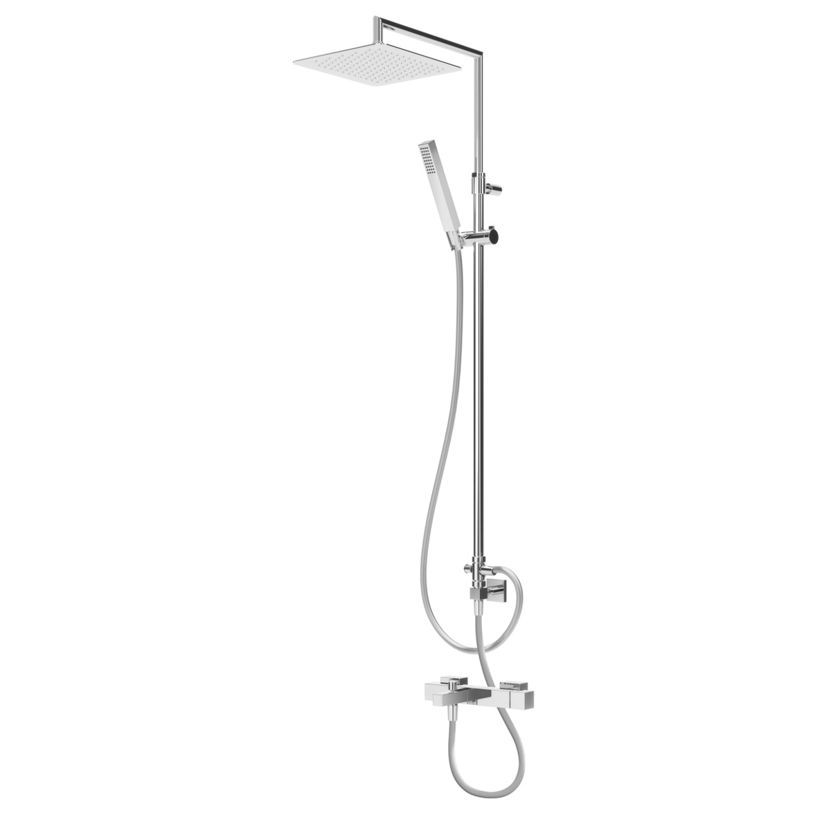 Bruma Escudo Zestaw wannowo-natryskowy ścienny z deszczownicą 300x300 mm na ramieniu ruchomym i słuchawką prysznicową Chrom 1022672CR