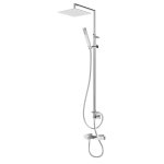 Zestaw wannowo-natryskowy z deszczownicą, regulowanym ramieniem, baterią i słuchawką.