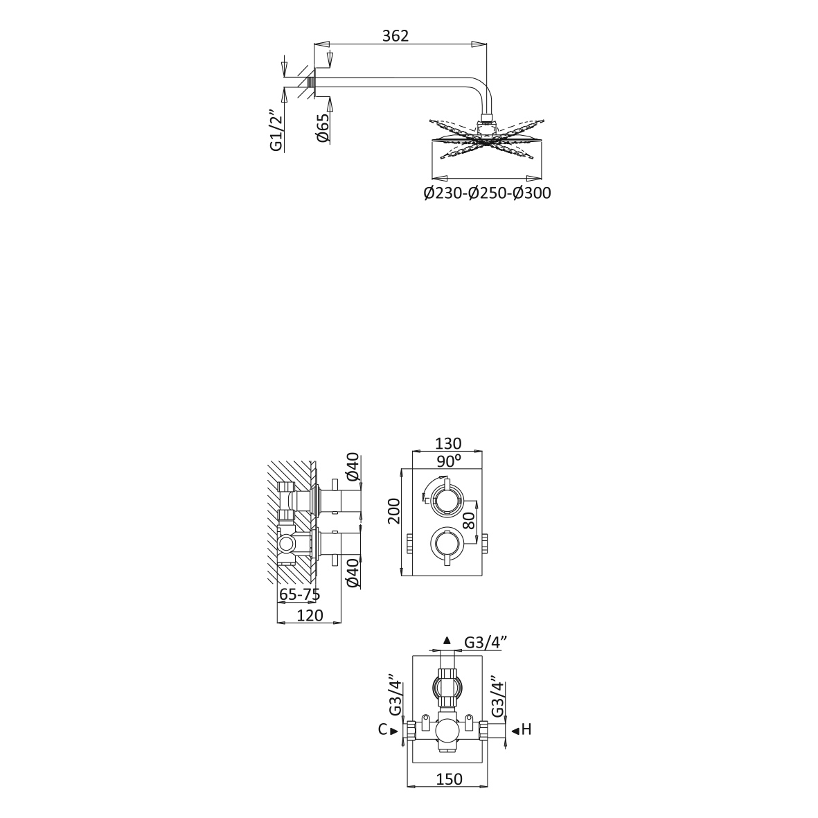 Bruma Elo Zestaw natryskowy termostatyczny podtynkowy z deszczownicą ścienną Ø 230 mm Chrom 1387801CR