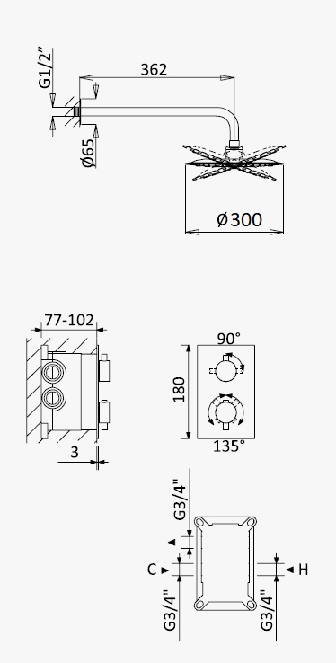 Bruma Elo Zestaw natryskowy termostatyczny podtynkowy Ø 300 mm ściennym Chrom 1387806CR