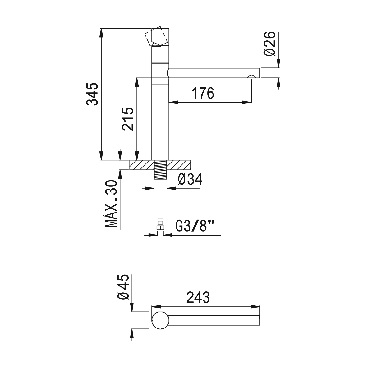 Wysięg wylewki: 176 mm