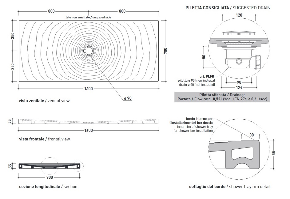 Flaminia Water Drop Brodzik ceramiczny 70x160 cm Biały DR7016