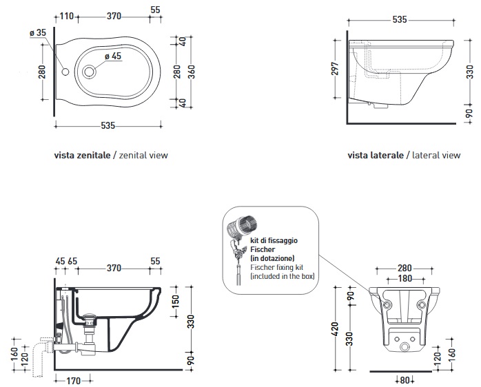 Flaminia Efi Bidet wiszący 53,5x36 cm Biały EF218