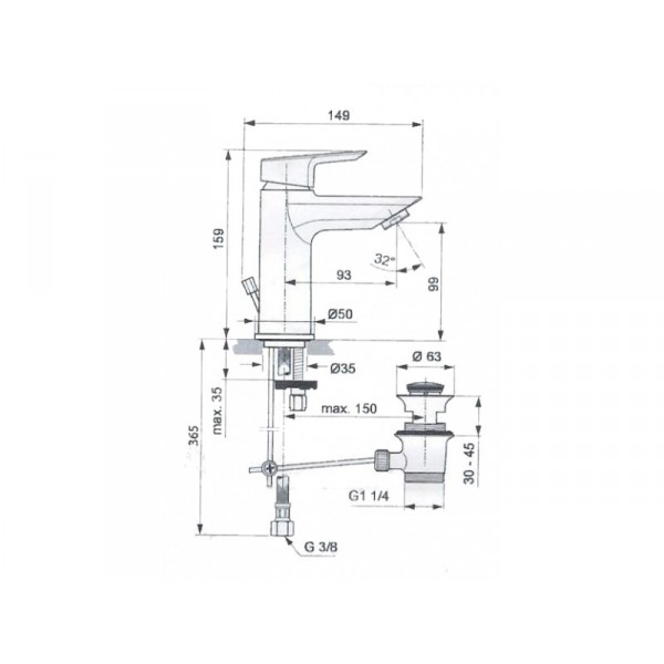 Ideal Standard Tesi Bateria umywalkowa stojąca 5l/min - z korkiem A6557AA