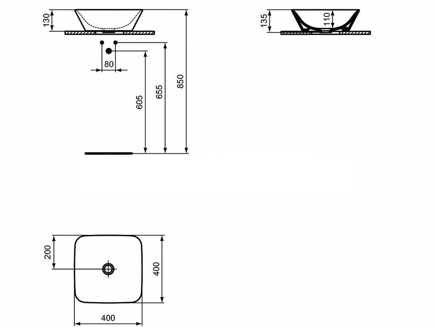 Ideal Standard Connect Air Umywalka nablatowa 40 cm kwadratowa E034701