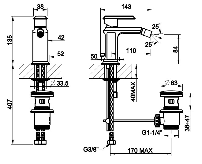 Gessi Eleganza Bateria bidetowa jednootworowa z korkiem chrom 46007.031