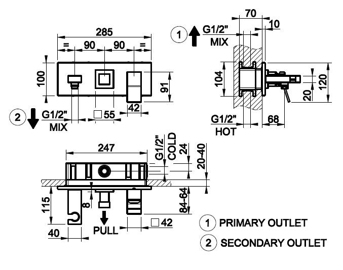 Gessi Rettangolo K Bateria wannowo-prysznicowa ścienna element zewnętrzny chrom 53141.031