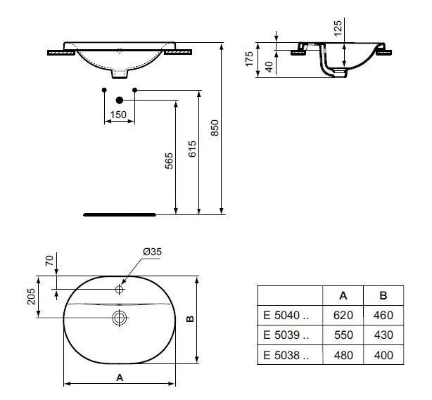 Ideal Standard Connect Umywalka wpuszczana w blat 62 cm, z otworem na baterię, biała E504001