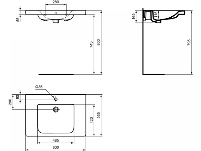 Ideal Standard Connect umywalka dla niepełnosprawnych 80 cm, biały E548401