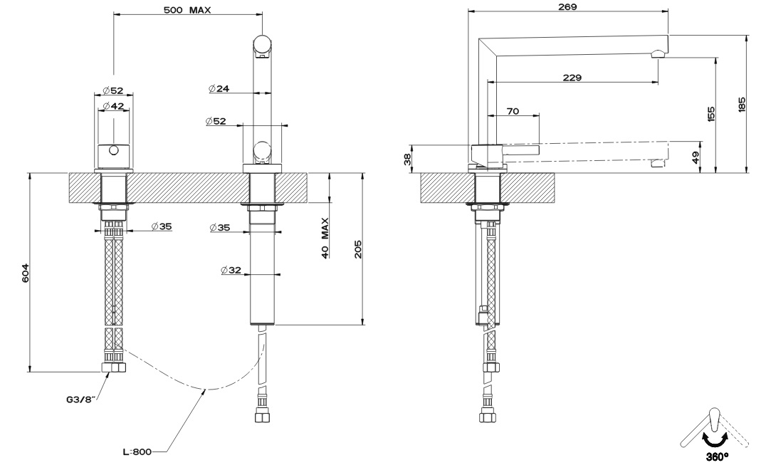 Gessi SU&GIÙ Bateria kuchenna 2-otworowa Chrom 50107.031