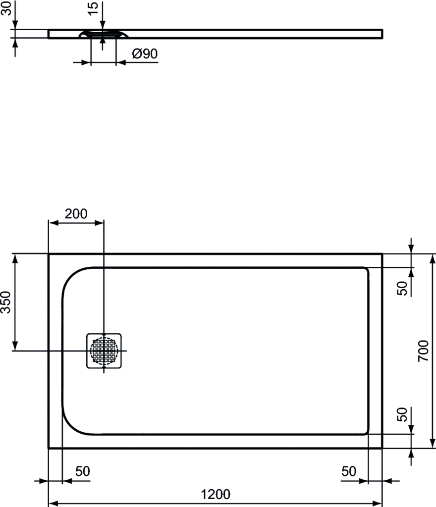 Odpływ Ø90mm, do skompletowania z syfonem.