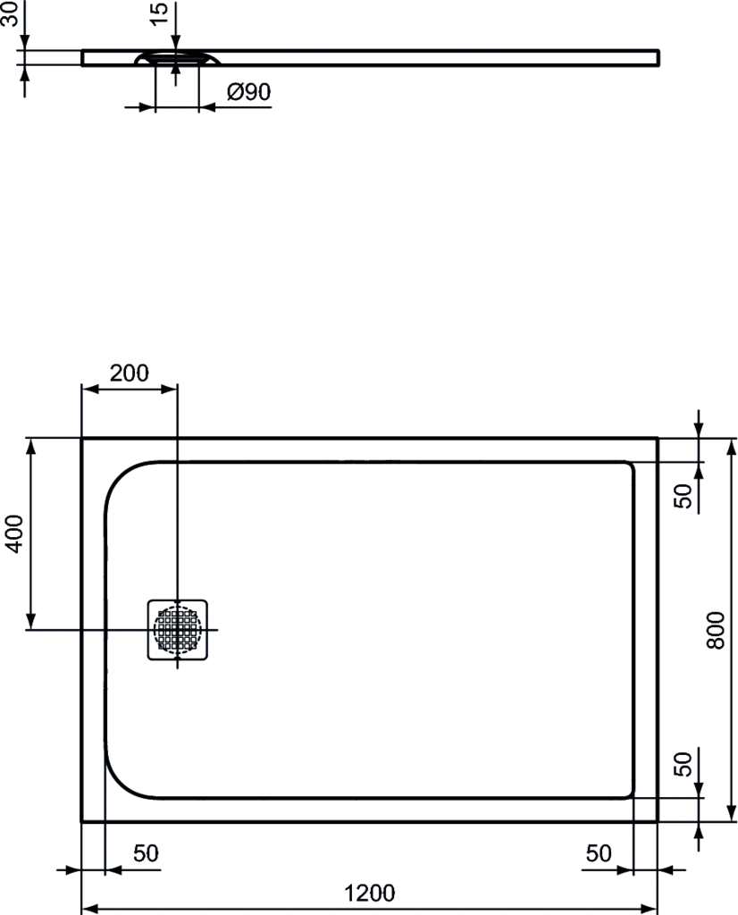 Odpływ Ø90mm, do skompletowania z syfonem.