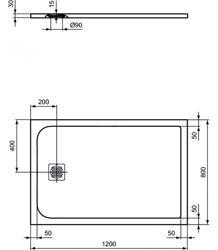 Odpływ Ø90mm, do skompletowania z syfonem.