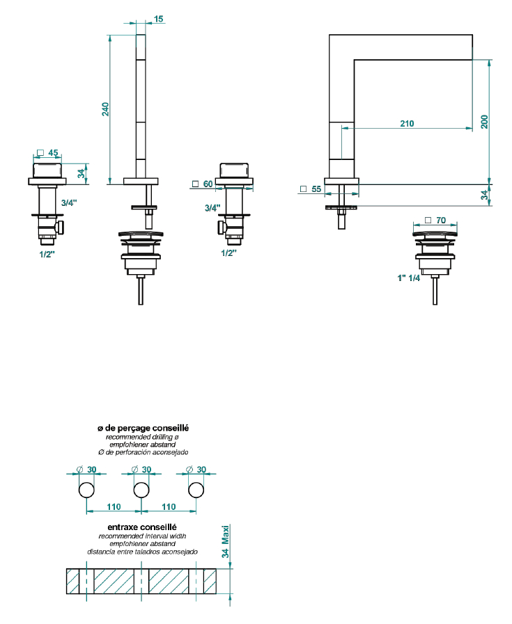 THG Harper Bateria Umywalkowa 3-otworowa chrom D7A.A02.151