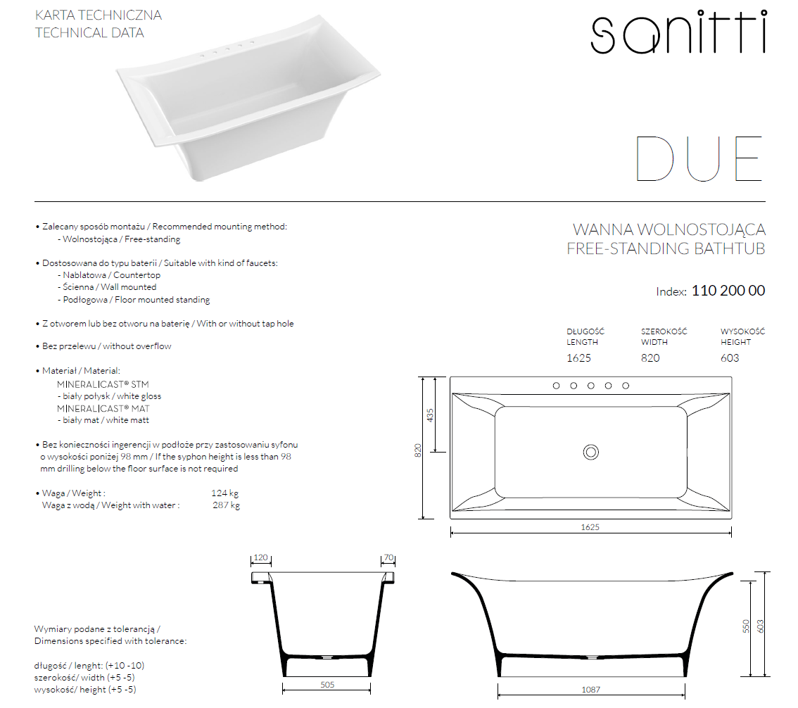 Sanitti Due Wanna wolnostojąca 162,5x82 cm Biał połysk 11020000-BP
