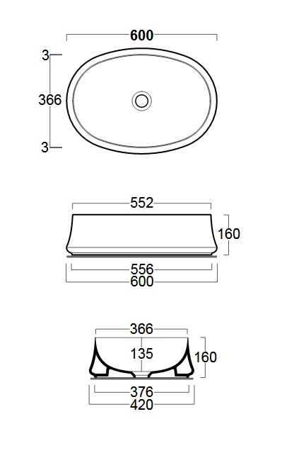 Simas Sharp Umywalka Stawiana na blat 60x37 cm SH04/SH 04