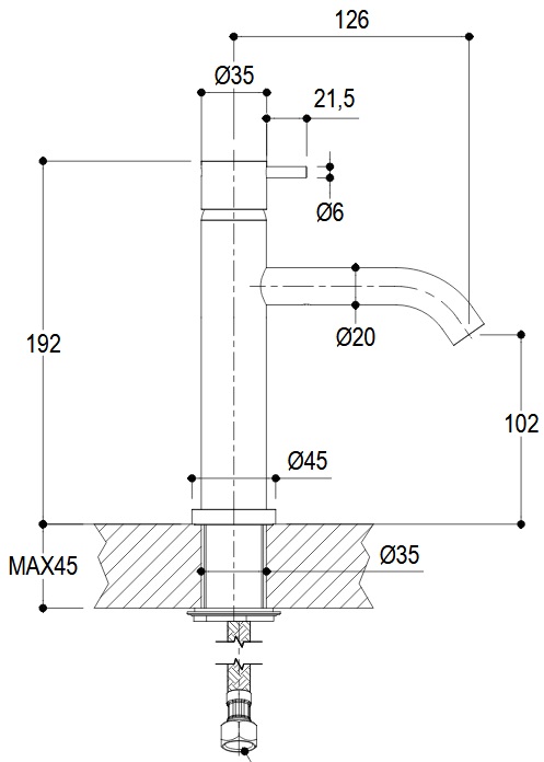 Ritmonio Diametro35 Bateria umywalkowa 1-otworowa stal nierdzewna E0BA0123CINOX