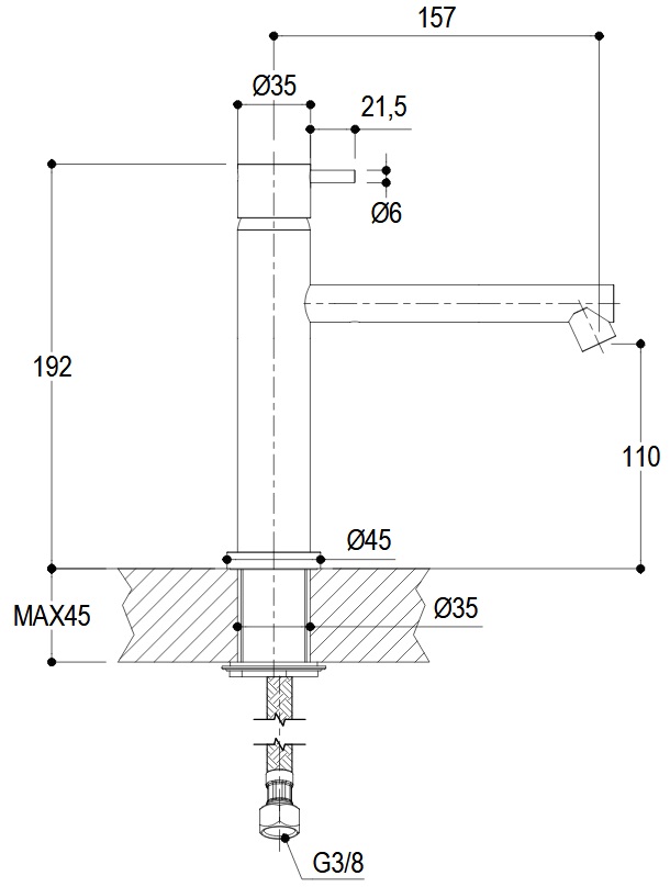 Ritmonio Diametro35 Bateria umywalkowa 1-otworowa stal nierdzewna E0BA0124DINOX