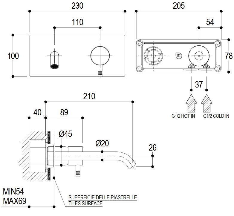 Ritmonio Diametro35 Bateria umywalkowa ścienna podtynkowa stal nierdzewna E0BA0117C