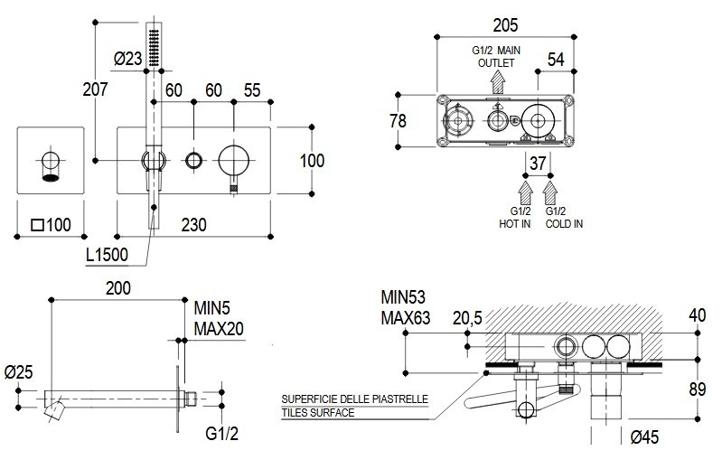 Ritmonio Diametro35 Bateria wannowo-prysznicowa podtynkowa z słuchawką stal nierdzewna E0BA0438DINOX