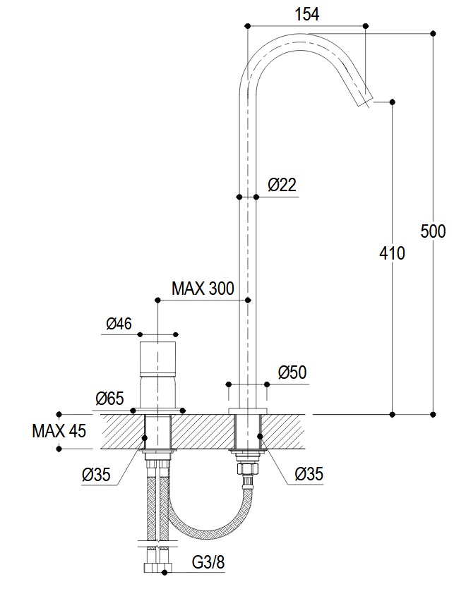 Ritmonio Diametro35 Concrete Bateria umywalkowa 2-otworowa stal nierdzewna E0BA0125H2INOX
