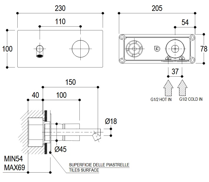 Ritmonio Diametro35 Conrete Bateria umywalkowa ścienna podtynkowa stal nierdzewna E0BA0116DINOX