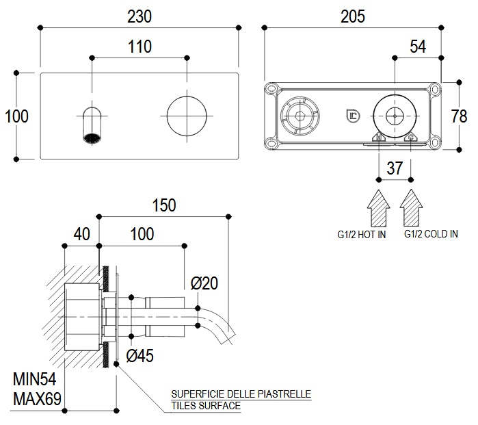 Ritmonio Diametro35 Concrete Bateria umywalkowa podtynkowa stal nierdzewna E0BA0116C