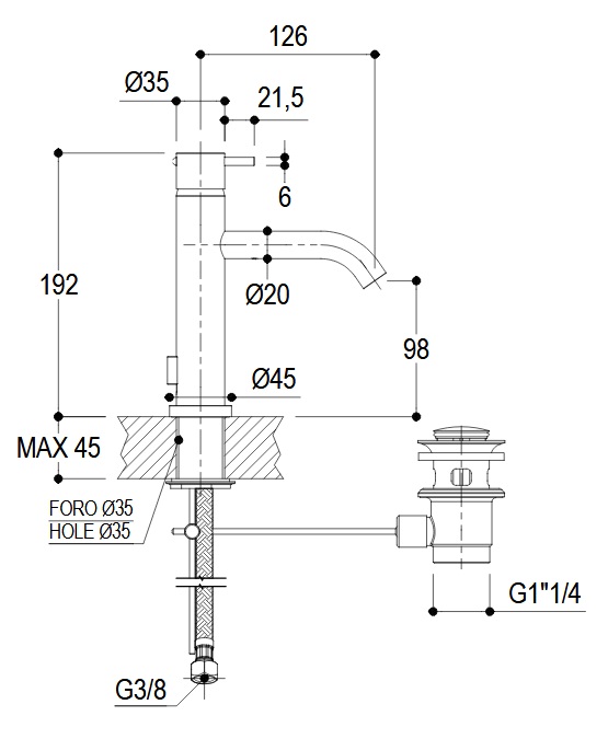 Ritmonio Diametro35 Bateria umywalkowa 1-otworowa z korkiem automatycznym chrom E0BA0121CLCRL