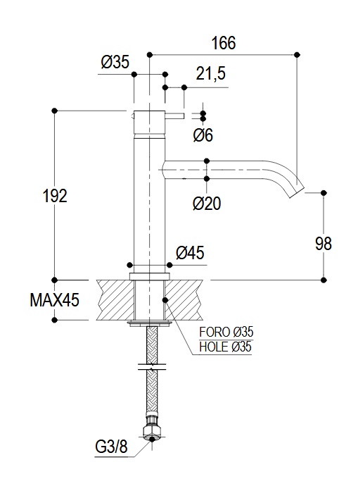 Ritmonio Diametro35 Bateria umywalkowa 1-otworowa chrom E0BA0124CLCRL
