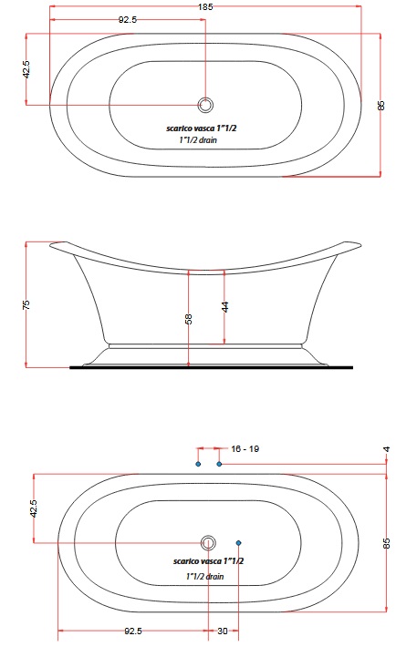 Olympia Ceramica Formosa Wanna wolnostojąca 185x85 biały połysk VAFORBA01