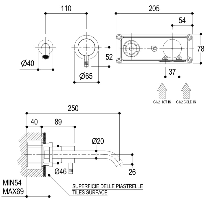 Ritmonio Diametro35 Bateria umywalkowa podtynkowa chrom E0BA0117SPC.CRL