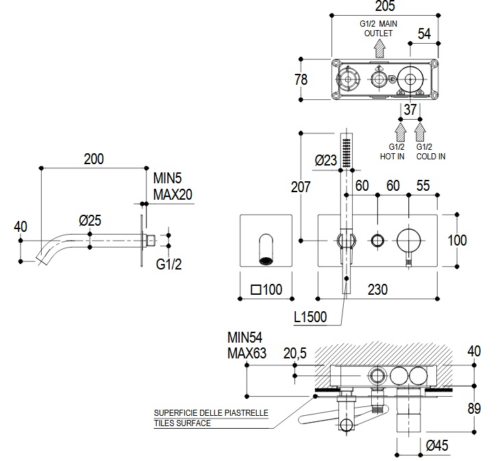 Ritmonio Diametro35 Bateria wannowo-natryskowa podtynkowa chrom E0BA0438CCRL