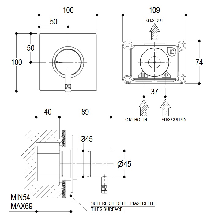 Ritmonio Diametro35 Mieszacz natryskowy podtynkowy chrom E0BA0144CRL