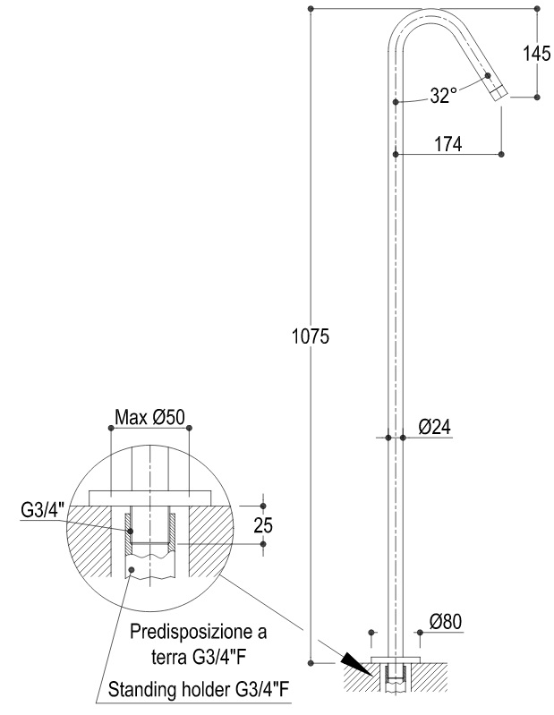 Ritmonio Diametro35 Wylewka umywalkowa wolnostojąca 108 cm chrom E0BA0104H1CRL