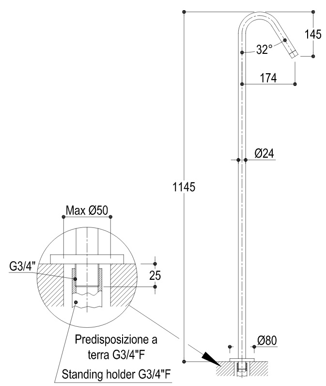 Ritmonio Diametro35 Wylewka umywalkowa wolnostojąca 115 cm chrom E0BA0104H3CRL