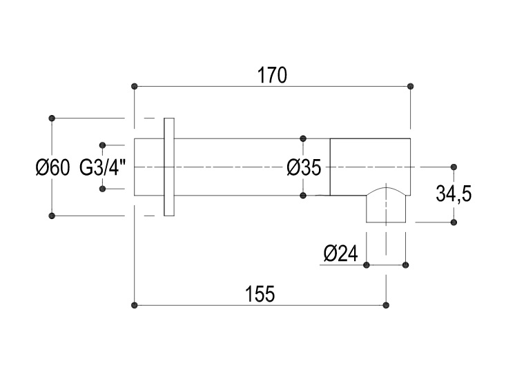 Ritmonio Diametro35 Wylewka wannowa ścienna chrom E0BA0155H1CRL