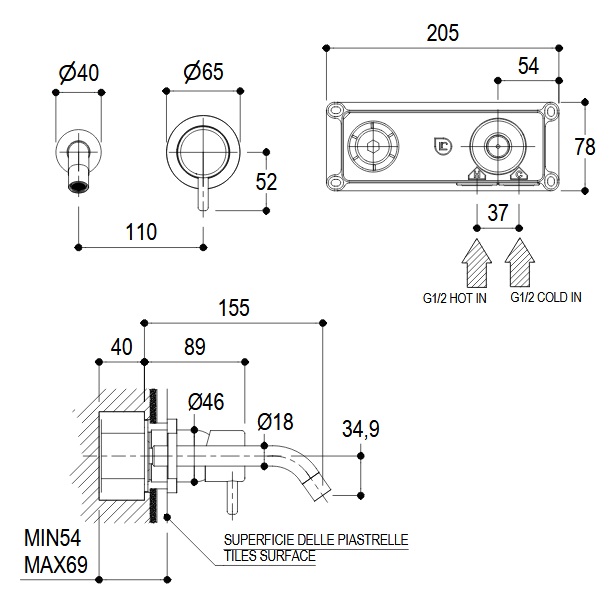 Cena dotyczy kompletu: bateria + element podtynkowy.