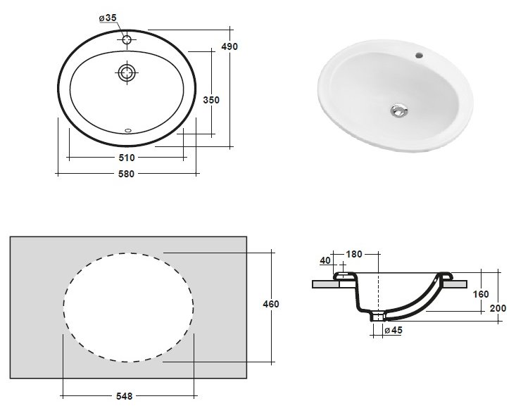 Olympia Ceramica Export Umywalka wpuszczana w blat 58x49 cm biały połysk LIL4658101